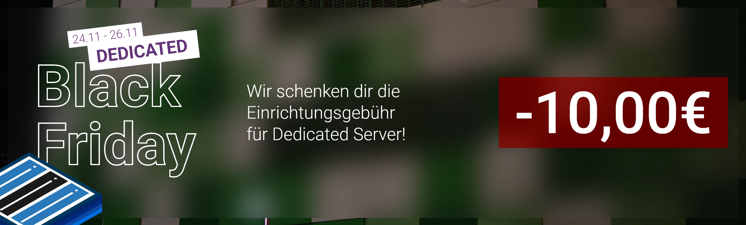 Spare jetzt sofort 10,00€ auf deine nächste Dedicated Server Bestellung bis zum 26.11.2023 0:00 Uhr! Das Angebot gilt für alle Bestellungen innerhalb des Aktionszeitraums.